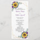 Esses programas de casamento apresentam um design floral de aquarela moderno com girassóis, rosas roxos e borda geométrica de ouro falso. A frente do cartão tem a cerimônia e a parte traseira do cartão lista a festa noiva. Estes programas de casamento fazem parte de uma coleção que inclui uma série de artigos de casamento semelhantes, como convites para casamentos, cartões de resposta, cartões de recinto, etiquetas de endereços, autocolantes e muito mais. Visite nossa loja para ver o intervalo de cheios.