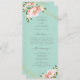 Aqui está o programa perfeito para o seu próximo casamento. Se você está apaixonado pelo tema elegante do casamento verde da menta e também ama ouro, aqui está sua partida perfeita. Este design apresenta pénicas cor-de-rosa-claro e cor-de-pêssego macio e rosa-buds, juntamente com uma forma geométrica falsa de folha de ouro rodeando os detalhes do seu programa de casamento, frente e verso. Tudo isso num fundo de verde-menta. Todo texto é facilmente personalizável usando os campos modelo fornecidos. Veja a coleção de produtos complementares de suite de casamento. Esta é uma excelente escolha para casamentos de Primavera e Verão. Se você tiver uma pergunta sobre design ou quiser ver este design em outro produto, por favor, sinta-se à vontade para entrar em contato comigo em jschmidtdesignworks@gmail.com. Design © Judith Schmidt.