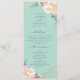 Aqui está o programa perfeito para o seu próximo casamento. Se você está apaixonado pelo tema elegante do casamento verde da menta e você também ama ouro e florais, aqui está seu jogo perfeito. Este design apresenta peonias elegantes e rosa-buds em tons de pêssego e creme embebidos em folha de ouro falsa, juntamente com uma forma geométrica falsa de folha de ouro rodeada dos detalhes do seu programa de casamento com um fundo de verde de menta na frente e atrás. Todo texto é facilmente personalizado usando os campos modelo fornecidos. Veja a coleção de produtos complementares de suite de casamento. Se você tiver uma pergunta sobre design ou quiser ver este design em outro produto, por favor, sinta-se à vontade para entrar em contato comigo em jschmidtdesignworks@gmail.com. Design © Judith Schmidt.