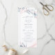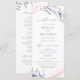 Design de folhagem botânica de cor azul-aquática, poeirenta, com folha de ouro falso, rosa, e estrutura geométrica, com roteiro, simples e elegante, programa de casamento de excelente para o casamento rústico de verão verde e ouro, casamento de jardim botânico primavera. Ver todas as peças correspondentes na coleção