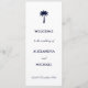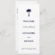Traga a elegância costeira para o seu dia especial com este programa personalizado de casamento costeiro, com um gráfico de palmeira azul-marinho chic contra um fundo branco nítido. Perfeito para um casamento de palmeiras perto do mar, este programa de cerimônia de casamento na praia de na moda combina encantos tropicais com design sofisticado. As fontes de tipografia elegantes e de script de caligrafia que fluem orientam seus hóspedes através da ordem de serviço com graça e clareza. Um toque bonito e prático para qualquer celebração da costa tropical.