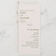 Um programa de casamento moderno e simples, cinzas e verde-oliva, desenhado com letras simplistas e guiadas, e um elemento floral. Personalize com seus detalhes da cerimônia de casamento na frente, e sua festa de casamento e obrigado que você manda no fundo.