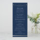 O Programa de Casamento Astronômico da Lua Sun Silver Sun Star Star Mystical apresenta sol prateado, lua e estrelas com um quadro de ouro sobre um fundo azul escuro de marinho com a ordem de cerimônia na frente e festa de casamento e obrigado no reverso em um roteiro de ouro moderno. Personalize editando o texto nas caixas de texto fornecidas. Projetado para você por ©Evco Studio www.zazzle.com/store/evcostudio