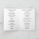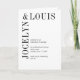 Programa moderno de casamento dobrado com um design preto e branco minimalista com seus nomes em uma fonte grande ao lado esquerdo e superior. Esta design é simples o suficiente para um casamento formal, mas faz uma declaração ousada.