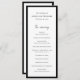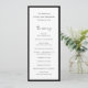 Programa moderno de casamento com um simples design com os cabeçalhos em uma combinação de um roteiro elegante com uma fonte moderna sans serif.