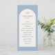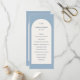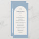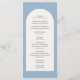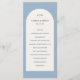 Programa moderno de casamento com seu monograma junto com sua ordem de cerimônia e dentro festa de casamento de um arco de marfim colorido sobre um fundo azul empoeirado. Este design simples, mas elegante, com cores mudas pode ser excelente para primavera, verão ou casamento no inverno.