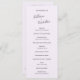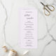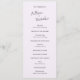 Programa moderno de casamento com um design simples e mínimo com seus nomes junto com os cabeçalhos no verso em um roteiro manuscrito contemporâneo. A paleta de cores é lavanda / roxa e pode ser alterada na ferramenta de edição de design. Esta design contemporânea funciona bem para qualquer estilo de casamento.