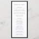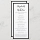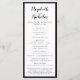 O Programa de Casamento Negro e Branco da Elegância Moderna mostra os nomes dos casais em uma bela caligrafia cercada por uma fronteira negra mínima. Personalize com seus detalhes da cerimônia de casamento. Este design está disponível em vários formatos e acompanhando convites para casamento e produtos de eventos.