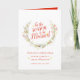 Arte floral da coroa floral de Natal com os elementos de bagas vermelhas, conchas, cones de pínus, flores vermelhas e ramos. Estrela vermelha, verde e amarela, desenho floral festivo e lavagem clara de água, programa de casamento no inverno de Natal. Personalize este programa de casamentos no inverno com seus próprios nomes, data, detalhes de casamento e obrigado você. © Impressão a aquarela original e design por Sarah Trett para www.mylittleedenweddings.com