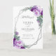 Aqui está o programa perfeito de dobradura de chic para o seu próximo casamento. Este design apresenta elegantes peonias e rosa-buds em tons de roxo e violeta junto com o verde-folhagem de eucalipto e uma falsa borda geométrica de folha de prata cercada dos detalhes do seu programa de casamento em um fundo branco. Todo texto é facilmente personalizado usando os campos modelo fornecidos. Veja a coleção de produtos complementares de suite de casamento. Se você tiver uma pergunta sobre design ou quiser ver este design em outro produto, por favor, sinta-se à vontade para entrar em contato comigo em jschmidtdesignworks@gmail.com. Design © Judith Schmidt.
