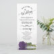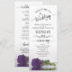 Este belo programa de casamento apresenta uma elegante design com um solteiro de longa gravidez ametista púrpura rosa deitado de lado refletindo na água. Os títulos são escritos em caligrafia de rico, e há espaço para seus detalhes de cerimônia e festa de casamento, assim como um obrigado curto para seus convidados. É uma maneira maravilhosa de dar as boas-vindas aos seus amigos e familiares à sua celebração de casamento.