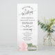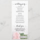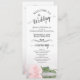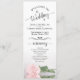 Este belo programa de casamento apresenta um design elegante com um solteiro longo e pálido, pincelado, pálido, cor-de-rosa, deitado do lado, refletindo na água. Os títulos são escritos em caligrafia de rico, e há espaço para seus detalhes de cerimônia e festa de casamento, assim como um obrigado curto para seus convidados. É uma maneira maravilhosa de dar as boas-vindas aos seus amigos e familiares à sua celebração de casamento.