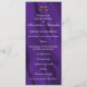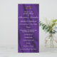 Um programa de casamento de seda roxo (faux) muito elegante, apresentando um padrão seda lindo em tons de roxo. Na frente no topo está um par de anéis de casamento dourados, e um par correspondente está no verso do cartão no fundo. Todos os detalhes podem ser personalizados acima. Este programa de casamento de na moda e roxo luxuoso foi feito especialmente como parte de uma coleção de convites de casamento que você pode ver no cheio aqui: https://www.zazzle.com/collections/purple_silk_and_gold_wedding_rings-119740320521525107