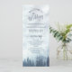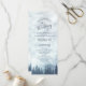 Este belo programa de casamento apresenta uma design rustica, mas elegante, com uma paisagem aquática de montanhas cobertas de pinheiros ou de pinheiros azuis envoltos em neblina ou nevoeiro. Os títulos são escritos em caligrafia de rico, e há espaço para seus detalhes de cerimônia e festa de casamento, assim como um obrigado curto para seus convidados. É uma maneira maravilhosa de dar as boas-vindas aos seus amigos e familiares à sua celebração de casamento.