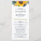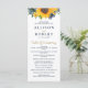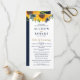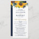 Programas de casamento Russo de Girassol Azul, Marinho de Aquarela. Design De Casamento Russo De Girassol Dourado Azul Com Buquê De Girassóis E Flores Azuis Marinhos, Linda Combinação de Marinhos e Amarelo para Casamento Tóquico Rústico ou Casamento De País.