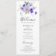 Programa de Casamento Floral de Marinho Lilac, Lavanda Azul. Lavanda púrpura elegante e programa de casamentos florais azuis com lindas flores pintadas manualmente e buquê verde com moderno roteiro de caligrafia. Itens correspondentes disponíveis.