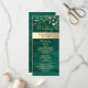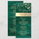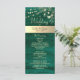 Guie seus convidados através do seu dia especial com este elegante programa de casamento boho, apresentando um fundo de madeira rústica, sotaques ricos em verde esmeralda, renda floral dourada vintage e luzes cintilantes. Este design combina sofisticação moderna com charme rústico, tornando-o perfeito para casamentos de outono, inverno ou ao ar livre. Personalize com os detalhes da sua cerimônia para criar um souvenir elegante e memorável para seus convidados.