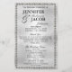 Este elegante e belo programa de casamento tem uma design de prata e diamante e procuraria excelente para qualquer casamento ou evento. Ele é totalmente personalizável com o seu texto, e você pode alterar a fonte e as cores para torná-lo realmente seu. Desenhada por Amelia Carrie.