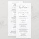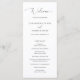 Programa de casamento branco clássico com "bem-vindo" em uma escrita delicada. Use o modelo para adicionar facilmente a ordem da cerimônia na frente e os membros do casamento e a mensagem de agradecimento no verso. Um layout simples sem gráficos torna este um design elegante e atemporal, perfeito para um casamento formal.