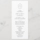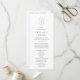 Este simples programa de casamento monográfico único e boho da Coleção Shylah é perfeito para um casamento clássico. O simples design preto-e-branco apresenta um monograma geométrico oval com as iniciais do casal e um elegante, mas boho. Inclua os nomes do casal, a data e o local do casamento, a mensagem do obrigado, a ordem de serviço, a festa de casamento e um memorial "em memória amorosa" opcional.