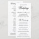 Deixe que seus convidados saibam o que esperar no seu dia especial com este programa de casamento tradicional com seus nomes em uma elegante caligrafia preta e a ordem da cerimônia na frente. O verso tem os membros da sua festa de casamento. O fundo é branco e pode ser alterado para qualquer cor que você desejar. Além de informar seus convidados sobre a ordem do serviço e quem está no cortejo de casamento, esses programas de casamento fazem um ótimo souvenir. Este design clássico é perfeito para um casamento formal e de gala.