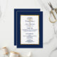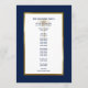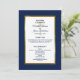 Forneça aos seus hóspedes esta design do programa de casamento, simplesmente elegante, com um roteiro moderno, texto azul marinho juntamente com uma palmeira de ouro artística e ouro metálico e borda azul marinho. Personalize-o com os seus nomes, data do casamento, obrigado da sua mensagem e detalhes da cerimônia. Os nomes das festas de casamento estão atrás. Entre em contato comigo se precisar de ajuda ou de um pedido personalizado.