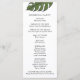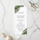 Programa moderno de casamento com uma simples design com duas grandes folhas de palma verdes junto com seus eventos de cerimônia, sobre um fundo branco na frente. A parte de trás tem uma folha de palma e sua festa de casamento. Este design tropical é perfeito para um casamento de verão na praia.