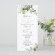 Programa Greenery Wedding. Este convite de casamento na moda e elegante apresenta um lindo verde floral de cor aquosa, pintado manualmente, eucalipto floral. Localizar itens correspondentes na Coleção de Verduras Fluviais Eucalyptus Eucalyptus.
