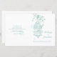 Casal de pássaros bonitos em desenho gráfico de linhagem de gaiola de pássaros aberta pendurada em uma primavera com corações florescente. Design de casamento moderno e fascinante da gaiola de pássaros, papel de carta de casamento romântico. Bonito tons pastéis de verde-menta sobre fundo branco. Edite este programa de casamento com seu próprio nome, datas, texto da cerimônia, assistentes de festa de casamento e obrigados. Um programa simples, mas elegante, simplesmente substitua o texto de amostra pelos detalhes de suas informações de casamento e dobre programas ao meio na entrega. Desenho exclusivo e design por Sarah Trett.