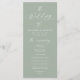 Este sofisticado programa de casamento mostra a frase "O Casamento de" em uma elegante caligrafia branca em um fundo verde sereno, criando um design calmante e eterno. Personalize o programa com seus nomes, data do casamento e detalhes da cerimônia em letras brancas em negrito para torná-lo exclusivamente seu. O verso mostra lindamente os nomes do seu partido noivo, acrescentando um toque atencioso e personalizado. Com o seu estilo moderno, simples e elegante, este programa de casamento é a escolha perfeita para casamentos formais e casuais em qualquer estação, complementando sem esforço o tema e a ambição de sua celebração.