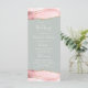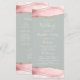 Este elegante e moderno programa de casamento apresenta cor d'água rosa pincelada agata bordas superiores e inferiores aparadas com brilho dourado. O texto aparece em letras brancas elegantes e fontes em cores em um fundo verde-sábio pálido.