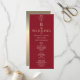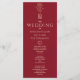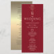 Monograma de flor de rosa dourada moderno, elegante e único, com iniciais gigantes personalizadas da noiva e do noivo. Programa de casamento simples, minimalista, vermelho e dourado.