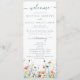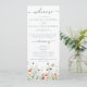 Este design apresenta uma borda de flores silvestres vibrantes em tons de vermelho, amarelo, verde, lacre e azul. Perfeito para casamentos casuais de verão.