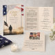 Honre um veterano querido com este digno programa de funeral militar Celebração da Vida com um design patriótico da bandeira americana. Uma escolha significativa para serviços memoriais, tributos a veteranos e cerimônias de lembrança. Personalize com os detalhes do seu ente querido para criar um souvenir sincero para familiares e amigos.