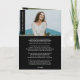Este modelo de programa de celebração da vida dobrado e elegante oferece uma maneira refinada e sentida de homenagear a memória do seu ente querido. Com um layout moderno em preto e branco, este design permite 4 fotos personalizadas, um obituário, ordem de serviço e um poema, citação ou hino, proporcionando uma homenagem atemporal. Um banner vertical na capa apresenta o título editável "Uma Celebração da Vida" com uma foto proeminente do seu ente querido, criando uma introdução digna e calorosa. No interior, compartilhe o obituário ou uma elegia, a ordem de serviço para guiar os convidados durante o evento. No verso, adicione uma mensagem pessoal, um poema, citação, hino ou agradecimentos e reconhecimentos. O layout limpo e a tipografia sofisticada tornam este programa um belo souvenir para amigos e familiares, oferecendo uma reflexão personalizada da personalidade do indivíduo, paixões e impacto duradouro nos que o rodeiam.