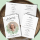 Estas celebrações dobradas de 5" x 7" de programas de funeral de vida apresentam uma foto na frente, em uma coroa de eucalipto com detalhes pessoais e "Celebrando a Vida de" abaixo. Dentro é a ordem de serviço, um obrigado que você envia, e Eclesiastes 3:1-8, mas você pode mudar qualquer coisa. Obituário e mais detalhes no verso. CORRESPONDENTE a itens na nossa coleção.