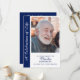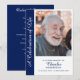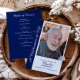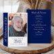 Programa de memorial de celebração de vida personalizado com foto é um souvenir elegante e de coração projetado para homenagear a memória de um ente querido. Este programa de funeral personalizado apresenta uma grande foto na capa frontal emoldurada por um painel lateral azul-marinho com as palavras “Uma Celebração da Vida” em uma escrita graciosa, ao lado de texto personalizável para o nome, datas e linha de tributo. O interior apresenta uma ordem de serviço claramente estruturada, exibida em um fundo azul-marinho rico com texto branco para um contraste marcante e digno. Este design equilibra o estilo moderno com elementos tradicionais, oferecendo uma homenagem polida e atemporal. Perfeito para funerais, serviços memoriais ou encontros de lembrança, este programa serve tanto como um guia funcional para a cerimônia quanto como um souvenir duradouro para familiares e amigos. A exibição proeminente da foto garante que o ente querido seja o foco, enquanto o layout fornece espaço amplo para detalhes significativos, como hinos, leituras e tributos familiares. Seja compartilhado com convidados, mantido como um lembrete ou preservado em arquivos familiares, este programa personalizado é uma maneira atenciosa de celebrar uma vida bem vivida e preservar memórias queridas. A paleta de cores azul e branco adiciona sofisticação e calor, tornando-o uma escolha ideal para criar um programa de lembrança pessoal e digno que familiares e amigos irão valorizar muito depois do serviço.