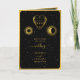 Um design de casamento místico celestial em preto e ouro. Um simples design de tarô que usa um fundo de estrelas do céu com lua crescente de ouro, sol celeste e monograma cardíaco correspondente. Um elegante design celestial preto e dourado com tipografia de escrita clássica. Uma moderna ordem de design de serviço de moda de moda com elementos modernos. Os convites de casamento e outros artigos de papelaria também estão disponíveis.