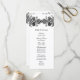 Este cartão permite descrever sua festa de casamento de um lado, e seu programa de cerimônia de casamento do outro. Personalize se você precisar adicionar linhas extras de texto. Apresentando folhas e vinha de gemido preto em forma de nó celta contra fundo branco.