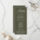 Elegante Classy, programa de cerimônia de casamento em cartão de 4 x 9 polegadas (longo). Ele foi projetado com sotaque de rolagem que pode ser personalizado com texto personalizado/ personalizado para seu partido noiva, detalhes da cerimônia, notas memoriais e mensagem de obrigado. Se estiver procurando outros tipos e tamanhos de cartão de programa, procure a nossa seção correspondente de coleção de cartões de programa.