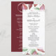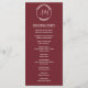 Estes programas de casamento apresentam um design de folha de aquarela moderna com folhagem de burgundy e verde. Há um monograma atrás. A frente do cartão tem a cerimônia e a parte traseira do cartão lista a festa noiva. Estes programas de casamento fazem parte de uma coleção que inclui uma série de artigos de casamento correspondentes. Visite nossa loja ou veja nossas páginas de coleta para ver o intervalo de cheios.