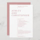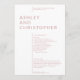Simples programa minimalista de cerimônia de casamento desfeito de ornamentação extrania e priorização de funcionalidade, equilíbrio e harmonia. O design destaca os nomes do casal como ponto focal num bloco de texto isolado de grande dimensão, alterando a margem para os restantes detalhes. Tipografia minimalista limpa. A parte traseira do cartão inclui a noiva e um simples memoriam detalhados em texto branco sobre fundo colorido. Disponível em uma seleção curada de cores modernas ricas. O design é facilmente personalizado e personalizado. Por favor, responda a quaisquer comentários ou para obter assistência para atender às suas necessidades individuais. Sempre feliz em ajudar! Nota: deixe qualquer vazio de áreas de texto para remover ou usar a ferramenta design para personalizações mais específicas e elaboradas.