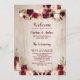 Programa Cerimônia de Casamento Floral Rustic Wood Burgundy