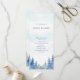 Este programa de casamento apresenta uma design de cor azul tranquila com uma silhueta de floresta nebulosa ao longo da fronteira inferior. O delicado gradiente de fundo transita de azul macio no topo para um centro branco limpo, criando um efeito pacífico e elegante. O layout é moderno e desorganizado, usando uma fonte serif clássica em azul para todo o texto. A frente exibe os nomes do casal e uma ordem clara de cerimônia. O reverso lista a festa de casamento, incluindo oficial, pais, madrinha de casamento, melhor homem, damas de honra, padrinhos de casamento, florista e portadora de anel. Um obrigado sincero que a mensagem do casal está incluída na parte inferior. Esta carta dupla face é ideal para a floresta, o inverno, ou para os casamentos ao ar livre, oferecendo um olhar sofisticado e calmo.