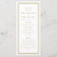 Elegante, minimalista, o programa de casamento em tom dourado e branco apresenta um design moderno simples com uma moldura dupla em um fundo branco crocante. A redação tradicional e clássica proporciona sofisticação atemporal. Personalize os detalhes da cerimônia de casamento para seus convidados com letras e caligrafia modernas. O verso do cartão combina com a cor tom dourado em branco crocante e é tudo sobre os membros da sua festa de casamento. Sinta-se à vontade para entrar em contato comigo em invitationsuites@gmail.com se tiver alguma dúvida sobre este ou qualquer um de nossos produtos.
