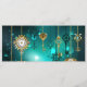 Chaves Douradas e antigas com engrenagens e marcadores penduram em correntes douradas sobre fundo verde luminoso.