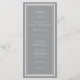 Elegante programa de casamento minimalista apresenta um design moderno simples com uma moldura dupla em branco crocante sobre um fundo ULTIMATE GRAY. A redação tradicional e clássica proporciona sofisticação atemporal. Personalize os detalhes da cerimônia de casamento para seus convidados com letras e caligrafia brancas crocantes na moda. O verso do cartão combina com branco crocante no cinza e é tudo sobre o seu casamento. Sinta-se à vontade para entrar em contato comigo em invitationsuites@gmail.com se tiver alguma dúvida sobre este ou qualquer outro de nossos produtos.