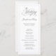 Com elegância clássica, este programa de casamento usa uma bela escrita floresce a caligrafia destacando a frente do programa. Uma simples borda de cinza prateada enquadra seu texto com o estilo atual. Os textos restantes na frente e atrás são todos configurados em um modelo fácil de usar onde você pode editar com seu programa de casamento e seus participantes de festa de casamento. Você pode adicionar ou excluir linhas de texto, redimensionar ou alterar o estilo da fonte, bem como mover o texto para atender às suas necessidades. Para simplificar a personalização deste programa, primeiro edite o texto mostrado no modelo de design com suas entradas. Em seguida, escolha "personalizar ainda mais" para mover as coisas e reposicionar o texto conforme necessário para se adequar ao layout de texto desejado.