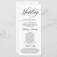 Escrito clássico legante clássico preto, programa de cerimônia de casamento em cartão (longo). Ele foi projetado com sotaque de rolagem que pode ser personalizado com texto personalizado/ personalizado para seu partido noiva, detalhes da cerimônia, notas memoriais e mensagem de obrigado.