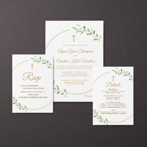 Catholic Church Gold Cross Greenery Wedding SuiteCriado por Lorena Depante